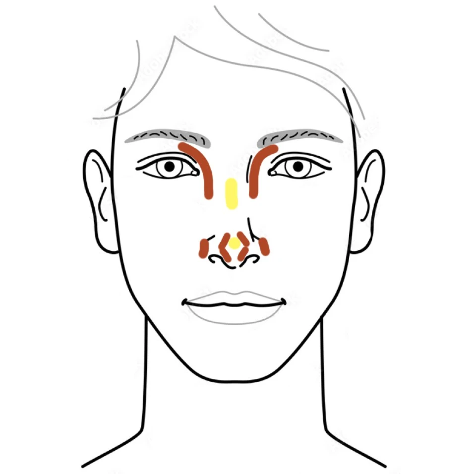 | 鼻根・鼻梁が低い | 鼻尖、鼻梁にハイライト、堀にシャドウ |